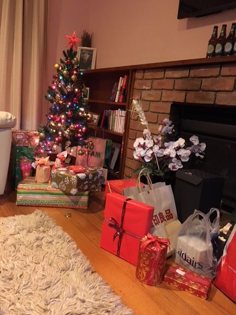 恒例のプレゼントタイム。ツリーの下に並べられたプレゼント達。
