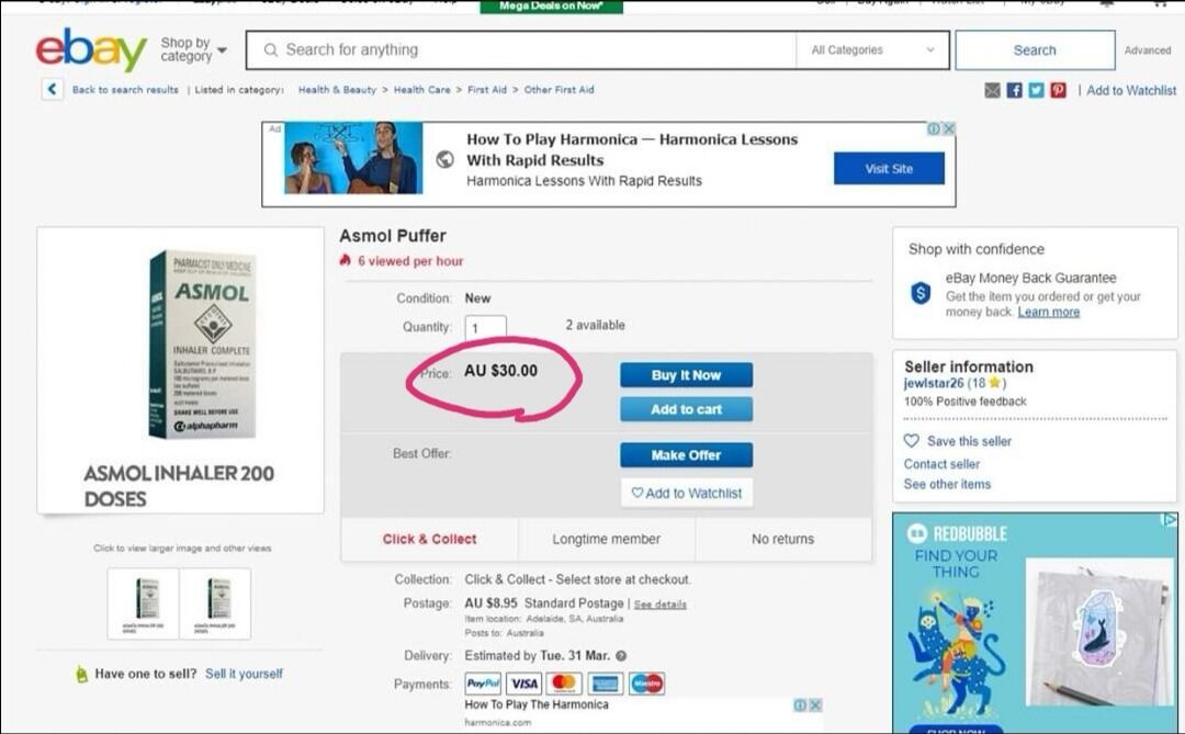 オーストラリアでは喘息発作の時に使うサルブタモール吸入薬が、薬剤師の判断で調剤することが出来ます。(もちろん、処方箋があると安くなることもあります。)