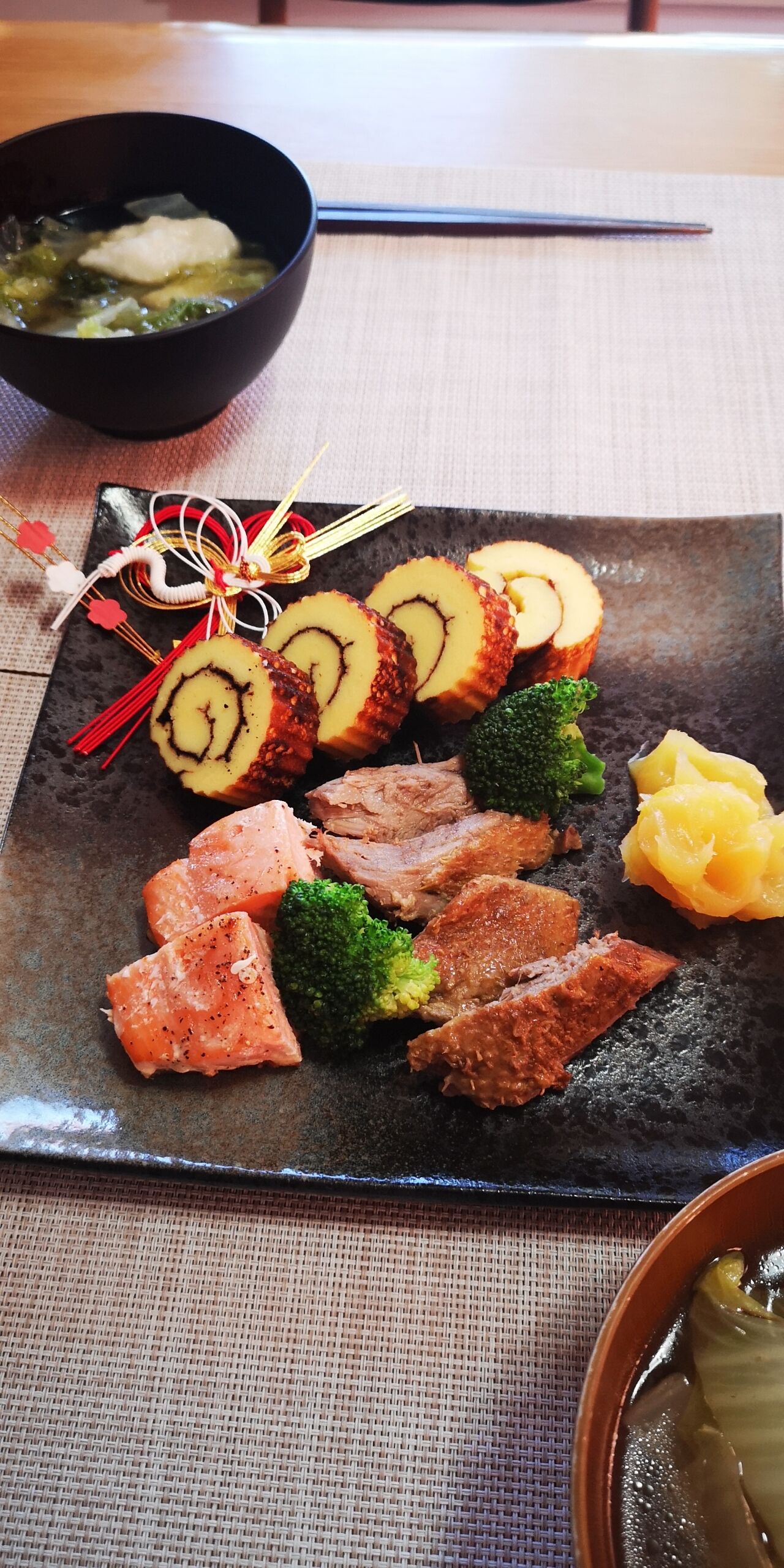 はんぺんを買って作ってみました。手抜きお雑煮は白玉粉で作ったお餅に、冷蔵庫の残り野菜を入れました💦)