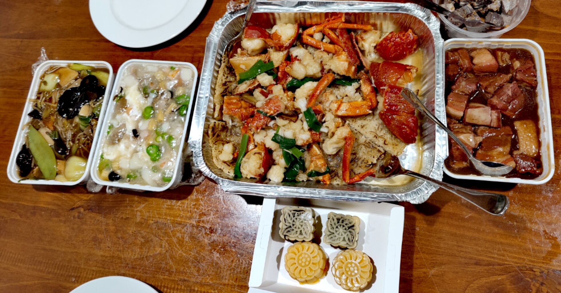 これは当日、中華料理店からテイクアウトしたディナーの様子↓