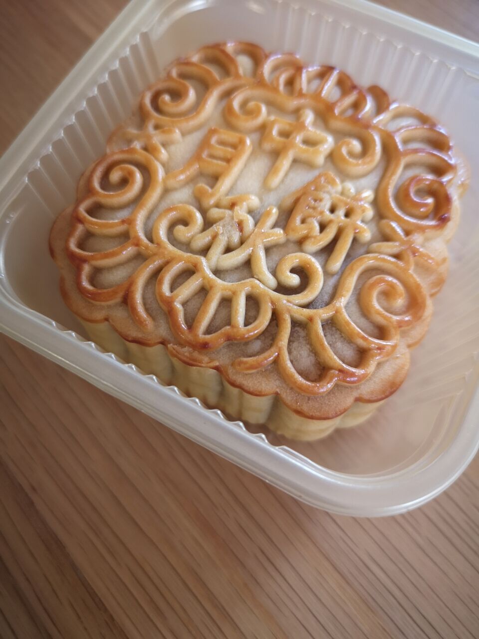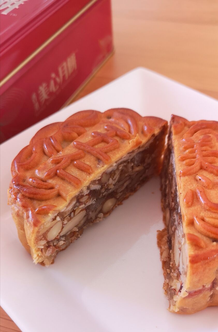 最近は、オシャレな月餅も色々出てきており、若者にも人気です。(写真の月餅は、小豆とカスタードクリームでした