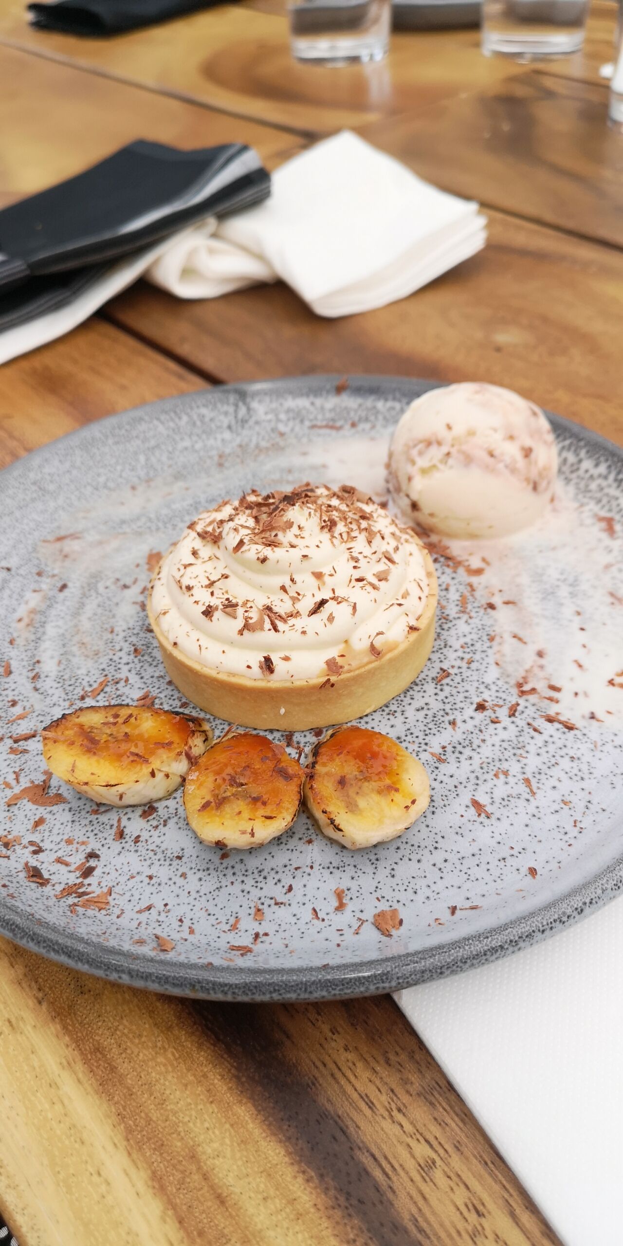 バノフィーパイ。アイスクリームが、真夏の炎天下の中、溶けていく~笑