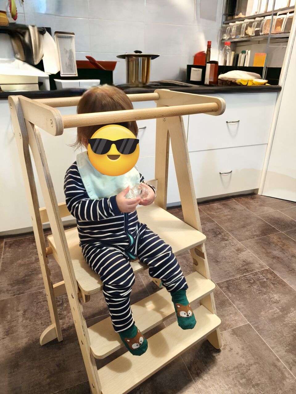 登るのが楽しくてジャングルジム的な存在になることも多いですが、これがあると私が料理している時も何をやっているかお嬢は見ることが出来ます。野菜を洗ったり、切ったブロッコリーをジップロックに入れる等、時間はかかるけれども出来る限り家事を一緒にやってもらうように心がけています。