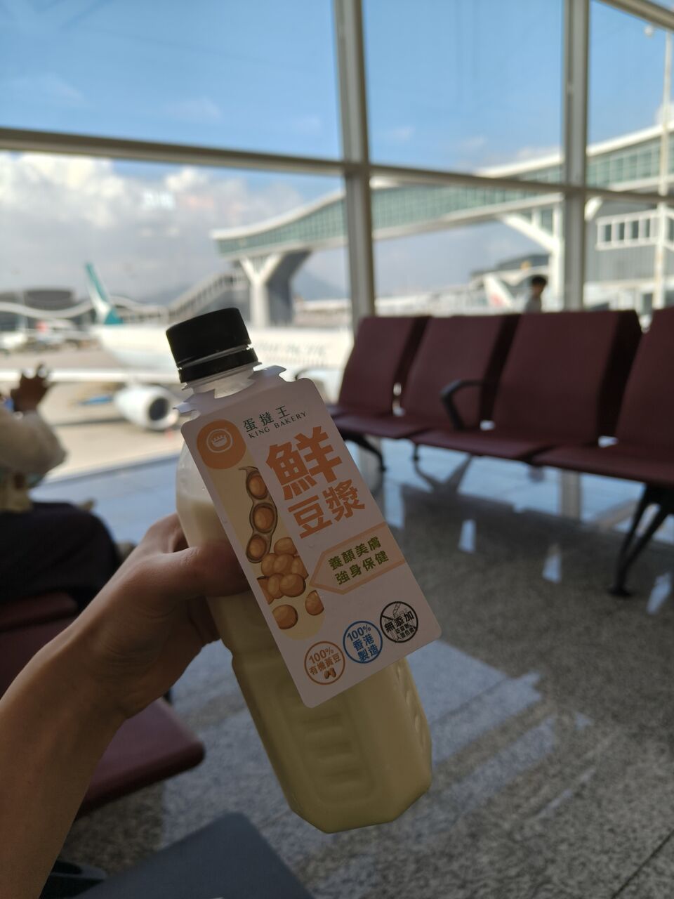 私はお腹が空いていたので軽く何か食べようと香港空港内にある有名なKing's Bakeryでエッグタルトと豆乳を購入しました。