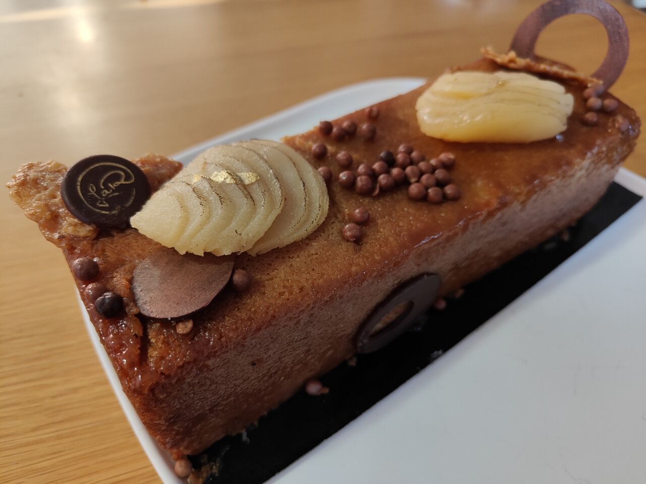 洋ナシがたくさん入っている、パウンドケーキ。洋酒もほのかに香り、シロップのためかものすごくしっとりしています。