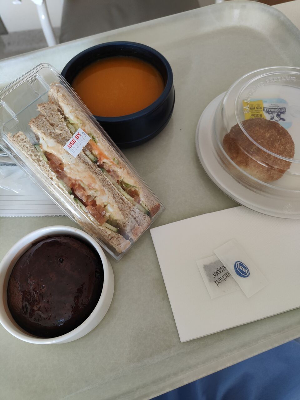 グルテンフリーのチキン&マヨサンドイッチも頼んでいたのですが、オーダーが通っておらずにまたナースさんに連絡してもらって後から届けてもらうことに。